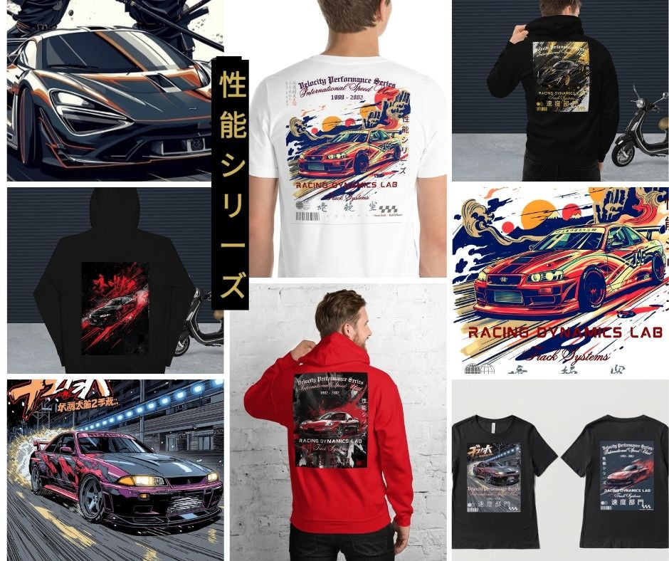 Japanese Streetwear Back Print Tech-wear Manga Anime JDM Cyberpunk Hoodie Car Art Graphic for Racing Fans